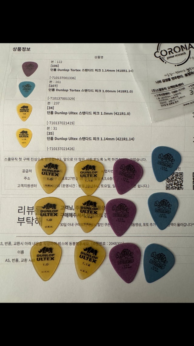 ´ø·Ó Dunlop Tortex ½ºÅÄ´Ùµå ÇÇÅ© 1.00mm (418R1.0)