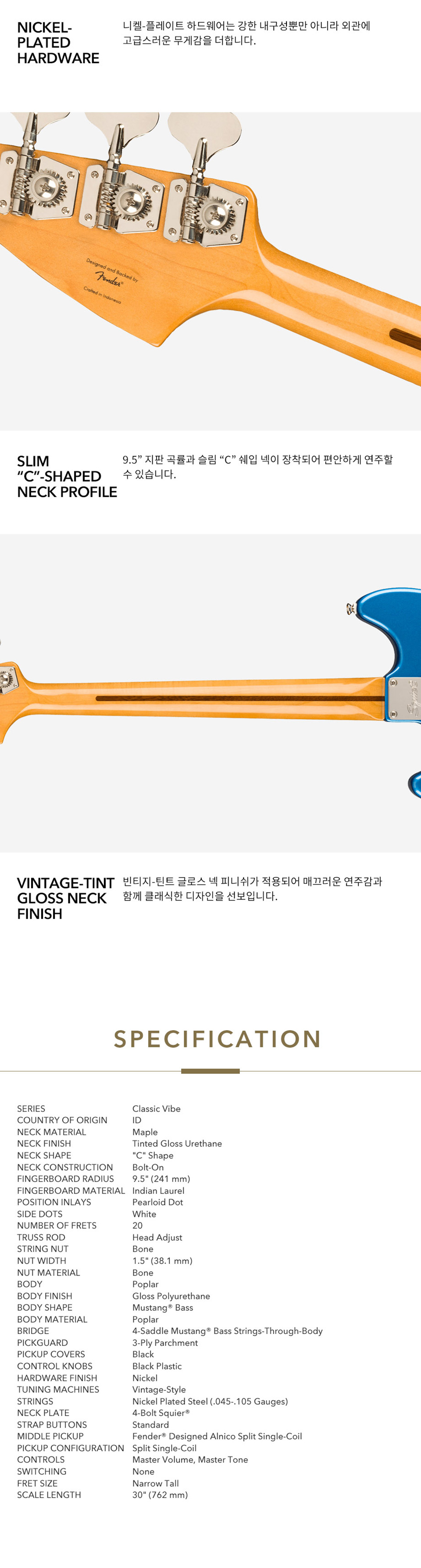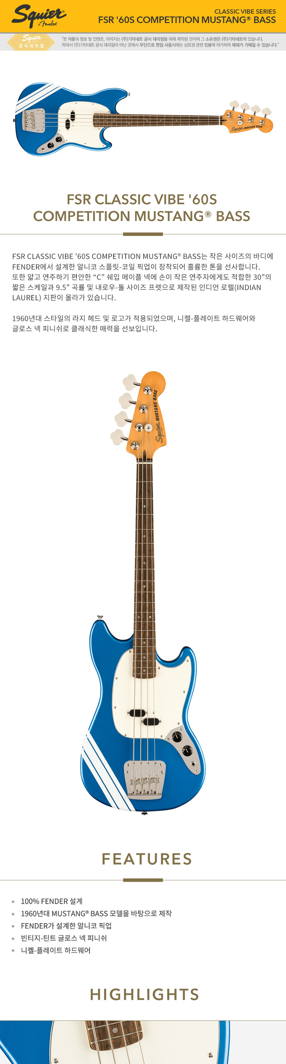 Squier - FSR Classic Vibe 60s Competition Mustang Bass / ½ºÄâÀÌ¾î º£À̽º (Lake Placid Blue)