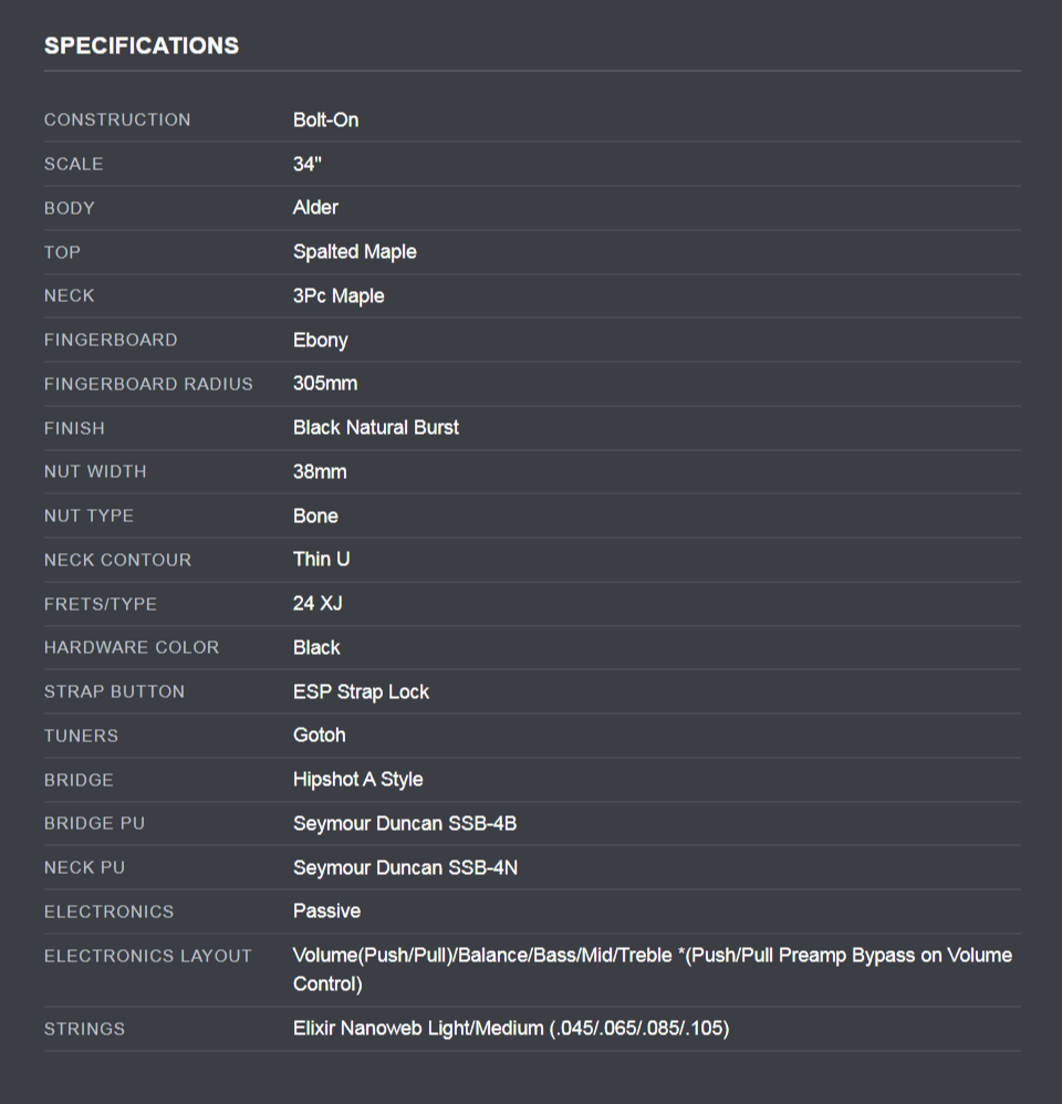 ESP E-II BTL-4 º£À̽º±âŸ (Black Natural Burst) Bottom Line Series Bass 4-String |