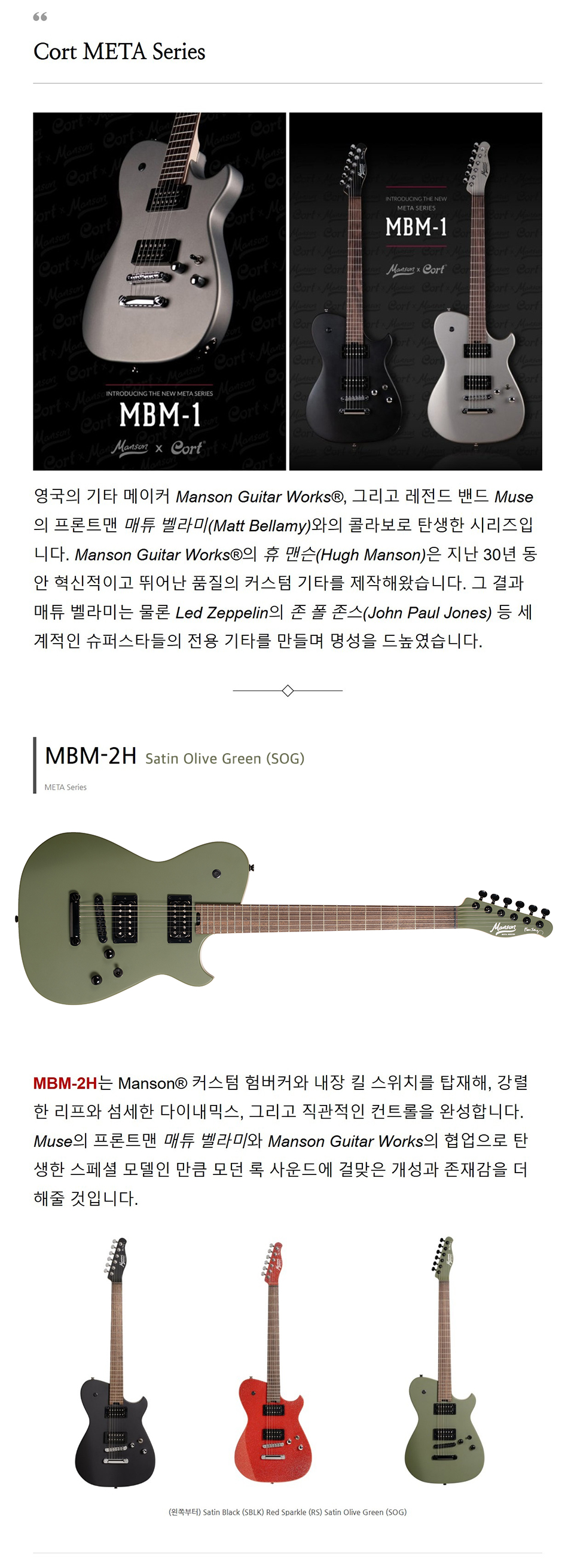 ÄÝÆ® Cort MBM-2H-B ÀÏ·º±âŸ (SOG) ¸ÅÆ© º§¶ó¹Ì ½Ã±×´Ïó / Satin Olive Green Color |