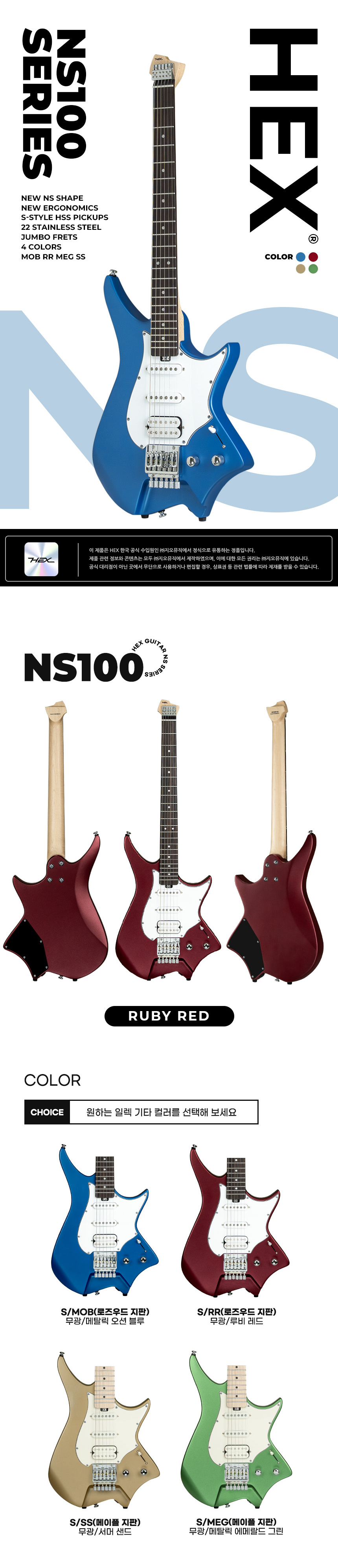 Çí½º HEX NS100 Çìµå¸®½º ÀÏ·º±âŸ (S/RR) Satin Finish / Ruby Red Color |