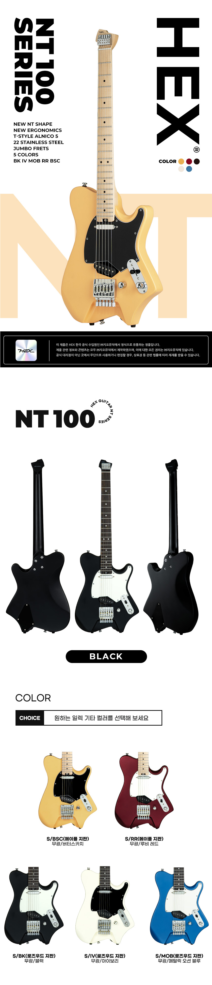 Çí½º HEX NT100 Çìµå¸®½º ÀÏ·º±âŸ (S/BK) Satin Finish / Black Color |