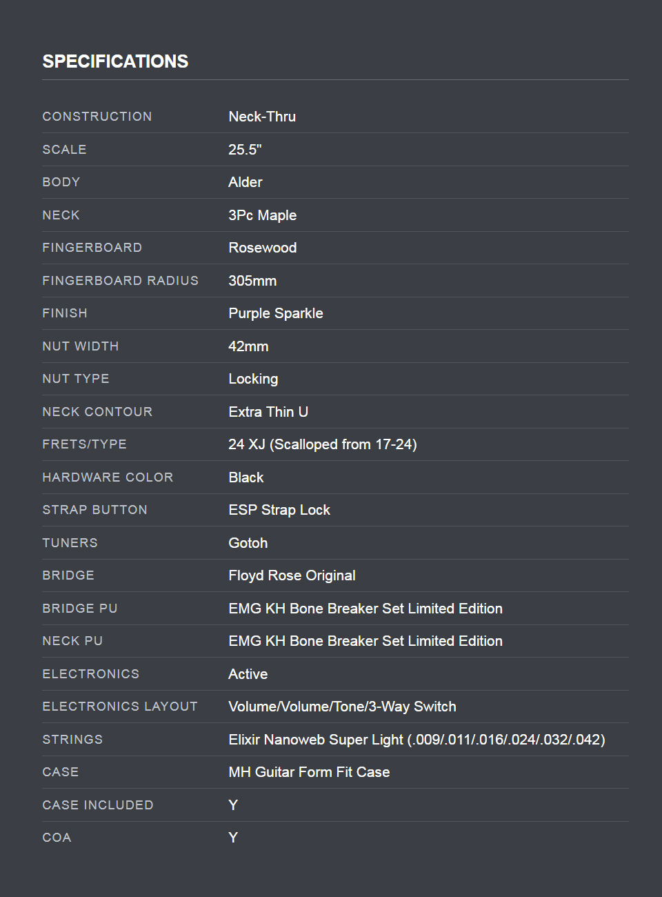 ESP Original : Kirk Hammett KH-2 Pupple Sparkle
