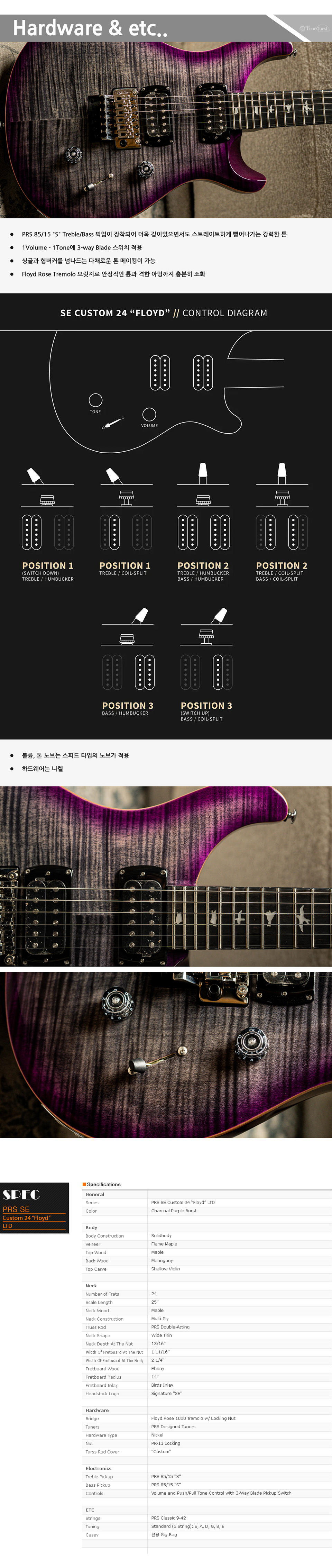 [2025] PRS SE Custom 24 Floyd LTD ÀÏ·º±âŸ (Charcoal Purple Burst) |